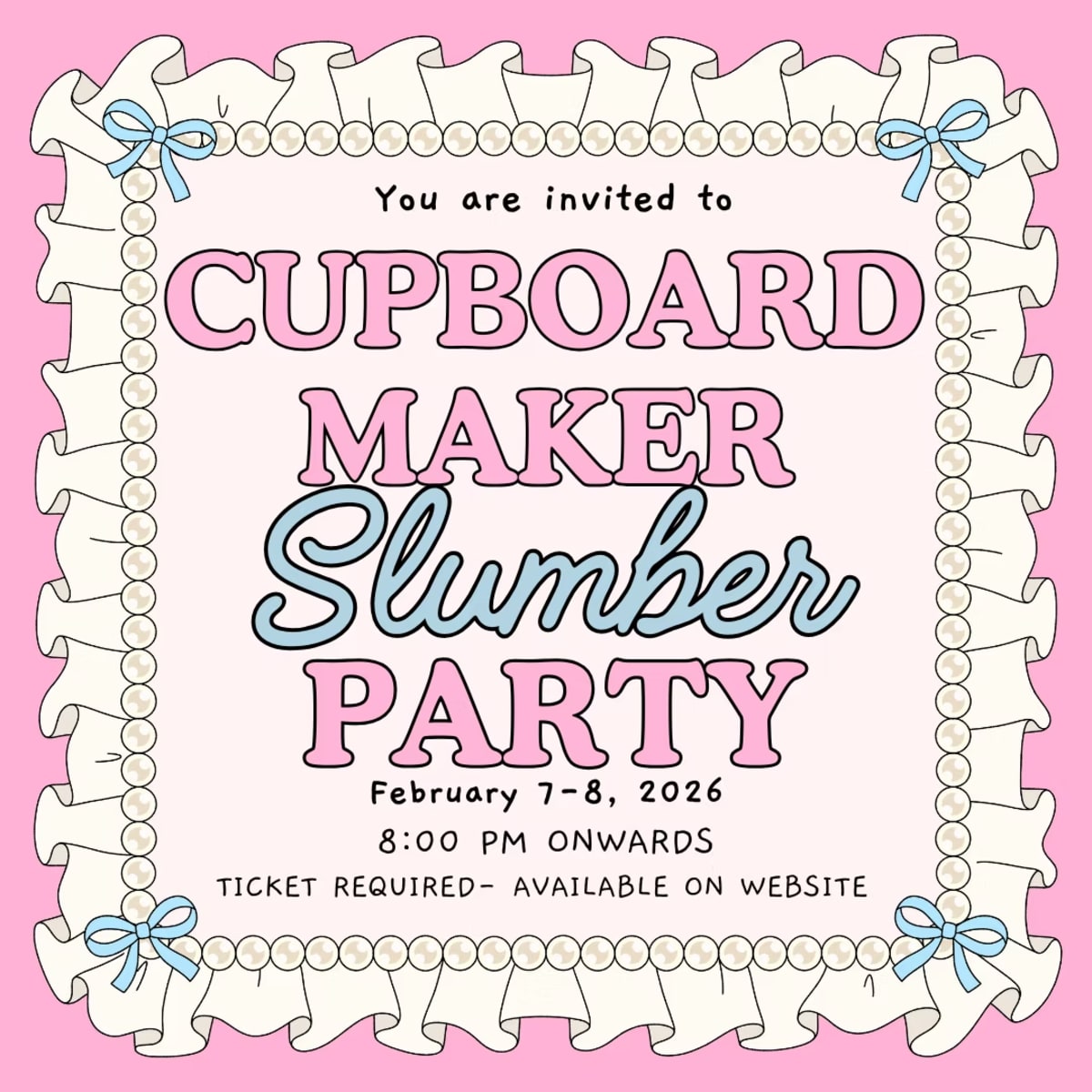 On Feb 7th, Cupboard Maker Books is having a night filled with games, movies, and fun. There will be swag bags, arcs, dinner, breakfast, non-alcoholic beverages, crafts, games, and a bunch of other activities. This is a 21+ only event.